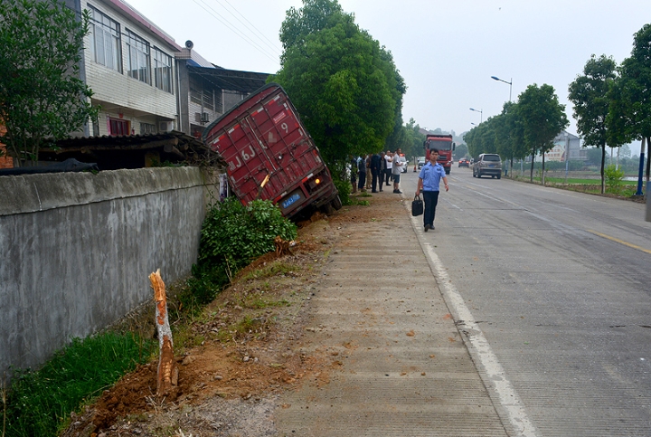 14时48分,石门县交警大队白洋湖中队值班室铃声大作,正在执勤室值班的中队指导员田志军迅速接警。原来是有群众报警称:在石门县蒙泉镇保宁桥村路段,有一辆货车发生侧翻,驾驶人卡在驾驶室里,伤情严重,请白洋湖交警中队马上派警力紧急出警,前往救援。