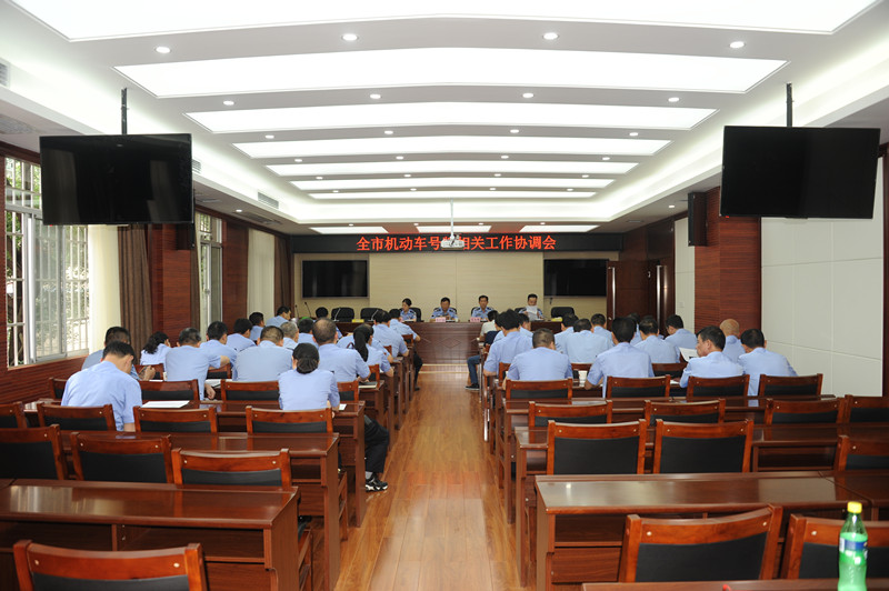 6月14日下午,支队在视频会议室召开了全市机动车号牌工作调度会。副支队长易琳、支队车管所长张家茂、财计科长卢晓琴,各大队分管领导、车管所长、财务股长参加了会议。会议由支队副政委翦定国主持。