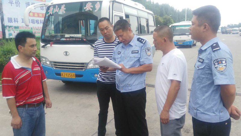 为确保“暑运”高峰期客运交通安全,根据县委、县政府关于“一月两查”工作的部署安排,7月4日,安乡县公安交警大队联合县交通局、公路局等相关政府职能部门,对县子龙汽车站、欣运集团安乡分公司等重点客运企业进行安全隐患突击检查。
