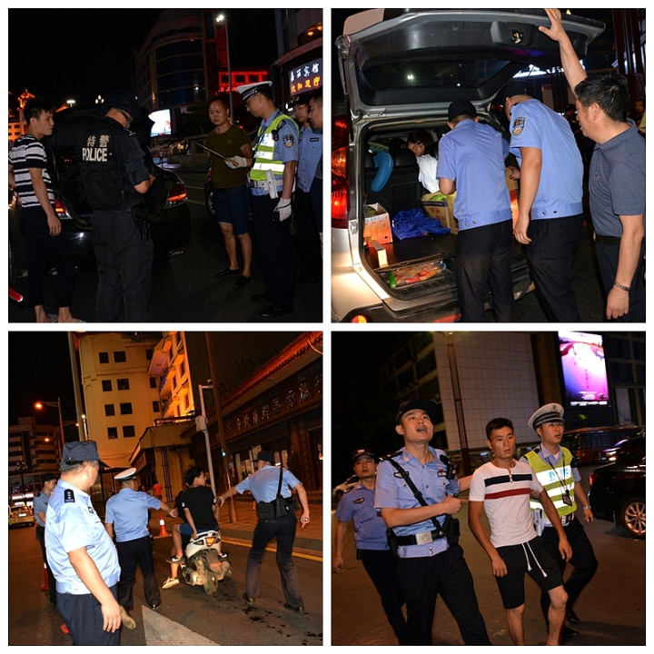 据悉,此次夜间盘查行动,由市公安局统一组织指挥,反恐、交警、巡特警,武陵区、鼎城区、德山、柳叶湖公安分局民警联合参与。在城区主要交通干道,主要路口,重点路段设置10个卡点,对各类违法行为特别是广大群众关注的街头“两抢一盗” 犯罪;吸、贩毒犯罪;街头暴力犯罪;非法携带各类管制刀具、枪支和危险爆炸物品;网上逃犯;无牌、无证、非法改装车辆,盗抢嫌疑机动车辆,“炸街”摩托车;酒驾、毒驾等交通违法行为进行重点盘查打击。
