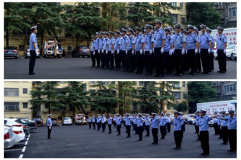 会后,大队还在大队院内组织与会民警、协警开展了队列、手势训练。并明确规定各股室、中队要形成每天上岗前十五分钟的规范执勤执法培训常态长效机制。