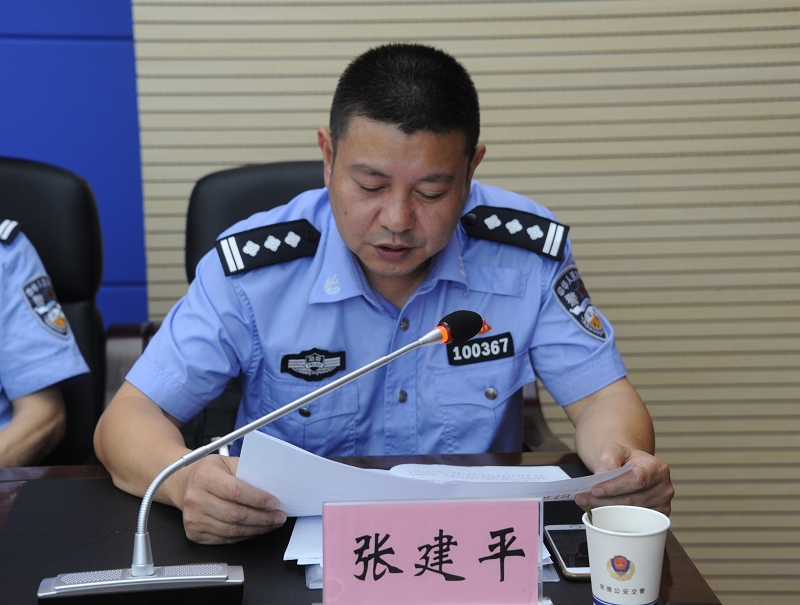 会议传达了公安部、省厅、总队及市委政法委、市公安局关于十九大安保维稳工作精神;印发了《队伍建设集中教育整训活动工作方案》、《全市公安交警系统党的十九大交通安保工作方案》;支队长邱兵泉作了重要讲话,全面部署公安交警队伍集中教育整训及十九大交通安保工作。