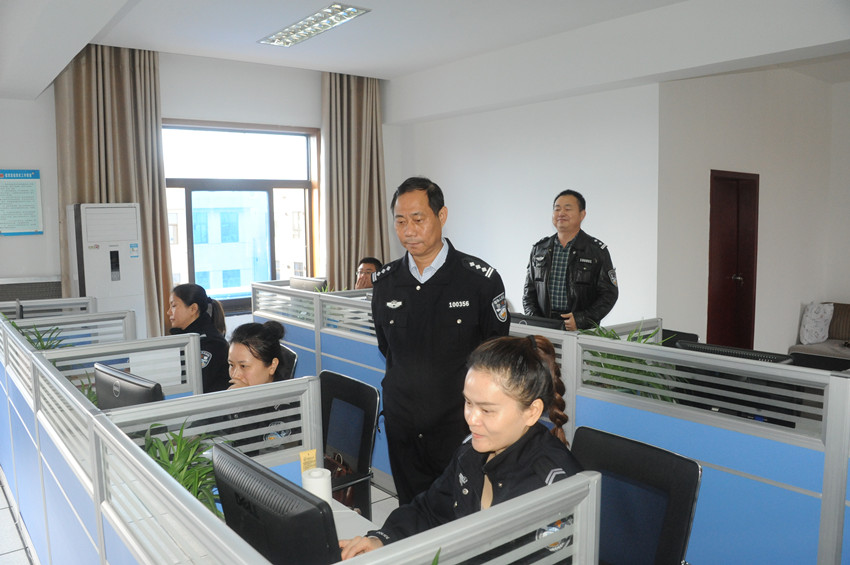 曾召宪同志一行首先来到了大队指挥中心查看了辖区各路口路段道路通行及领导、民警值班备勤情况,并在会议室听取了大队相关领导的“四大攻坚战”及十九大交通安保工作汇报。