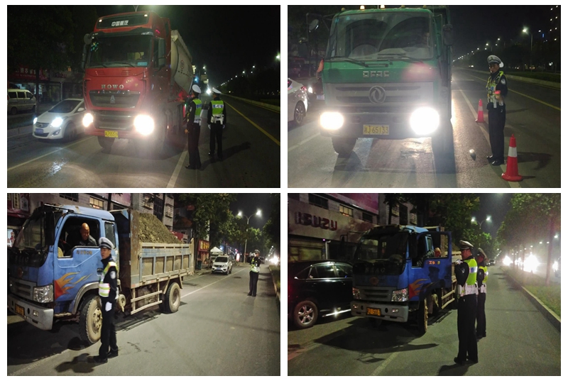 行动中,执勤民警、协警在辖区重点路段常德大道青年路口设卡对过往的大中型货车、工程运输车等车辆进行安全检查。严查严处涉牌涉证、酒驾毒驾、超载、不按规定使用灯光、故意遮挡污损号牌等严重交通违法行为。
