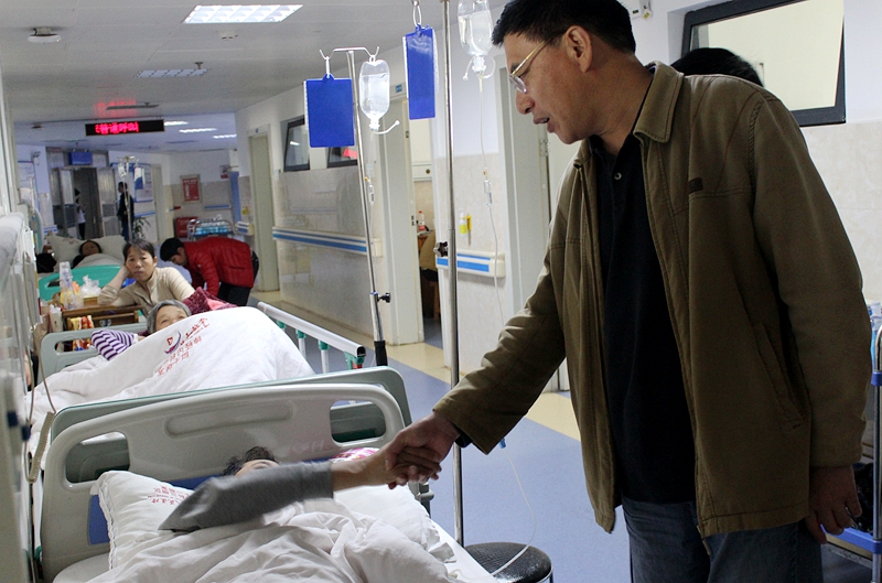 10月26日上午,常德交警支队政委刘元春在支队机关党总支书记周章平、政治处副主任曹阳和直属一大队教导员张帆的陪同下来到常德市第一人民医院,亲切看望慰问病倒在工作岗位上的大队民警邓志鸿。