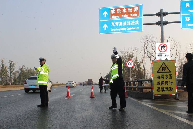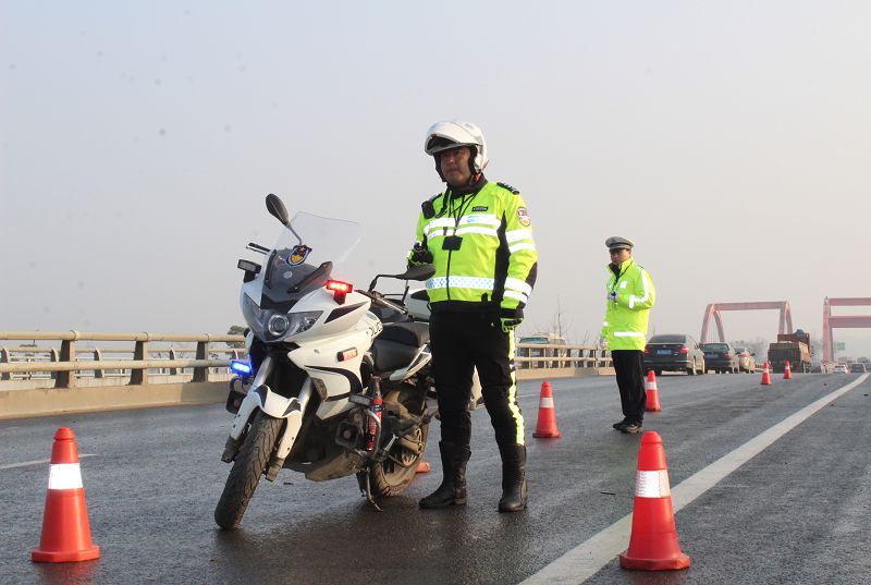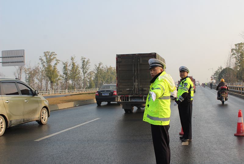 18日清晨7时, 跨湖大桥出城方向接连发生了小车连环追尾事故。由于事发时间正处早高峰期,事发路段又是出城高峰路段,紫缘路拥堵情况越来越严重。大队接警后立即启动恶劣天气交通安全应急预案,并排出巡逻骑警先期赶赴现场协助事故民警疏导现场交通。大队长吴为民抽调增援警力火速赶赴跨湖大桥事故地点,封闭右侧结冰道路,设立警示标志、锥筒,通过车载喊话设备提醒驾驶员桥面结冰、缓慢行驶、依次有序通行。在大队全体参战民警、协警的协调配合下,紫缘路柳叶湖跨湖大桥车流逐渐恢复通行秩序,道路拥堵得以缓解。上午9时左右,桥面结冰段逐渐融化,车辆恢复正常通行。
