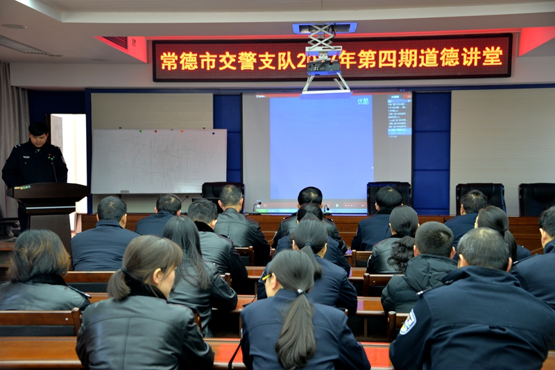 12月21日下午,支队在直属一大队“道德讲堂”会场举行2017年第四期道德讲堂活动。活动以“扶贫楷模”王新法事迹为榜样,教育引导民警忠诚担当、奉献为民,做一名新时代的优秀党员。活动由支队政治处组织,机关各部门民警代表参加。