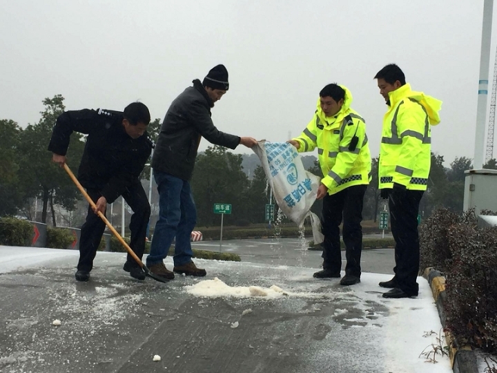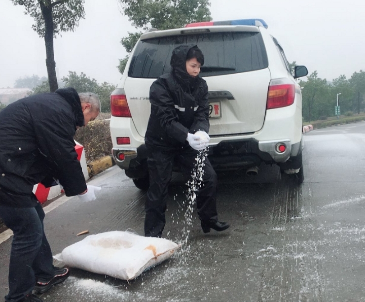 副支队长华晏带头开展白鹤山考场除冰防冻工作 发布时间:2018-01-05 12:30 信息来源:公安交警支队 【字体:小 大】 受冷空气影响,1月4日凌晨,常德迎来入冬以来第一场降雪。为防止考场周边及考试道路结冰,确保办事群众、考试学员的安全,考管中心立即启动冬季防冰雪应急工作预案,组织人员开展除冰防冻工作。上午9点,副支队长华晏带领考管中心、驾管所民警、职工、协警20余人,对白鹤山办公区以及科目二考试区域的陡坡、急弯、易滑路段进行清理,共计撒盐700余公斤,消除了路面结冰造成的安全隐患,保障驾驶人科目二、科目三考试的安全顺利进行。 扫一扫在手机打开当前页 【打印正文】 分享到: