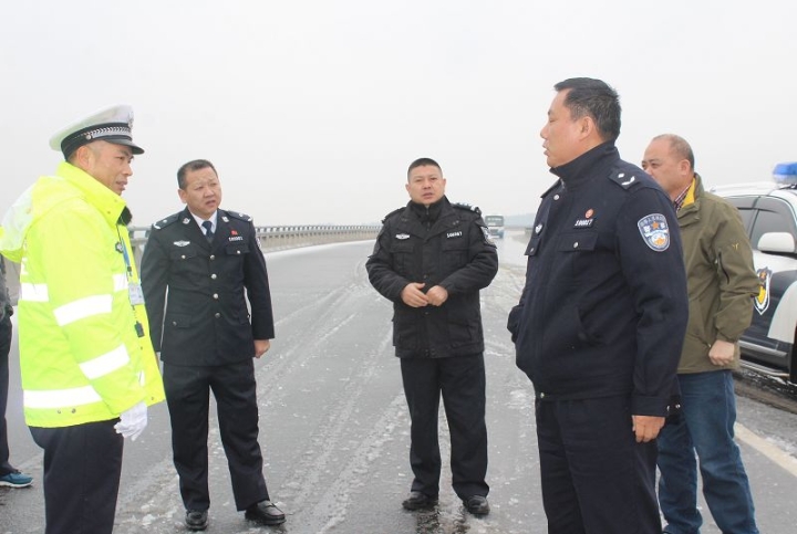 1月4日,常德市副市长、公安局局长李忠与常德市交警支队支队长邱兵泉,在常德市交警柳叶湖大队吴为民的陪同下深入辖区主要干道检查冰雪恶劣天气条件下道路交通应急管理工作落实情况。