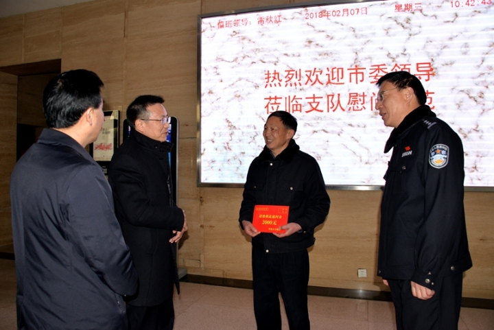 2月7日上午,带着市委领导的关心和厚爱,常德市委常委、市委宣传部部长胡丘陵一行来到交警支队,看望慰问全国道德模范提名奖获得者、湖南省道德模范沈国初,向他致以新春的问候和祝福。市委宣传部常务副部长王兴钊、副部长李清彪,市文明办副主任贵学军,支队政委刘元春等陪同慰问。