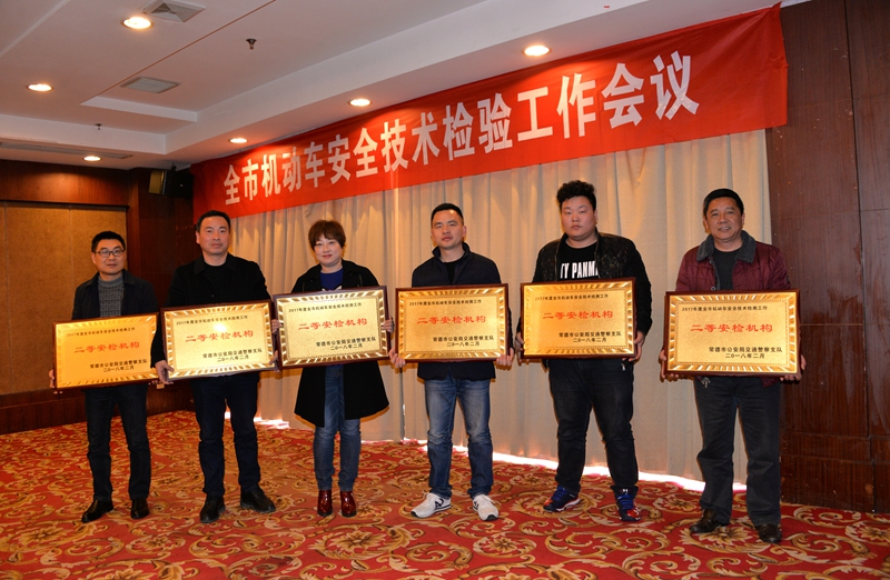 会上,机动车检验科副科长胡照明宣读了《关于2017年度全市机动车安检验机构等级考核评定情况的通报》。支队领导对全市2017年度安检机构等级评定排名分别获得一、二、三等级的安检机构单位进行了授牌。会议还下发了《常德市机动车安全技术检验机构日常业务监管记分管理办法》的通知,要求进一步强化监管职能、规范检测行为、树立行业标准、提高检测质量,把好交通事故预防的重要关口。