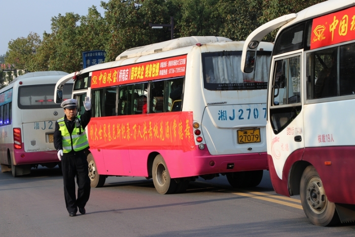 为了保障活动的顺利开展,为前来的八方宾朋提供一个安全、文明、畅通的景区交通环境,常德交警支队提前部署,从城区直属各大队抽调50余名警力增援桃花源交警大队。当日全体参战民警、协警从早上7:00时至晚上5:30分,组成了一支“实战化情报研判、一体化联勤调度、精准化路面管控、立体化交通诱导”的道路交通保畅尖兵。人海车流中,他们疏导交通、牵引车辆、路面排堵、应急处置、帮助群众,其忙碌的身影、舞动的白手套、闪耀的警徽,成了桃花源景区那片花海中一道亮丽的“警”色。