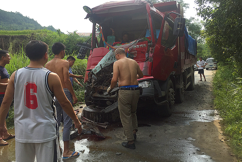 警情突至。子良交警中队中队长邓兆双一边召集组织警力,赶往事发地点;一边电话通知了子良镇卫生院出动救护车抢救伤者,并报告当地政府紧急赶往救援。经现场了解,驾驶员姚某清驾驶湘J65**3号重型货车途径子良镇骆生坪路段时,因操作不慎与前面一辆重型货车发生追尾。事故发生后,姚某清驾驶的重型货车车头严重变形,其双腿和部分躯干被死死的卡在车内不能动弹,鲜血沾满了座仓,情形相当危急。