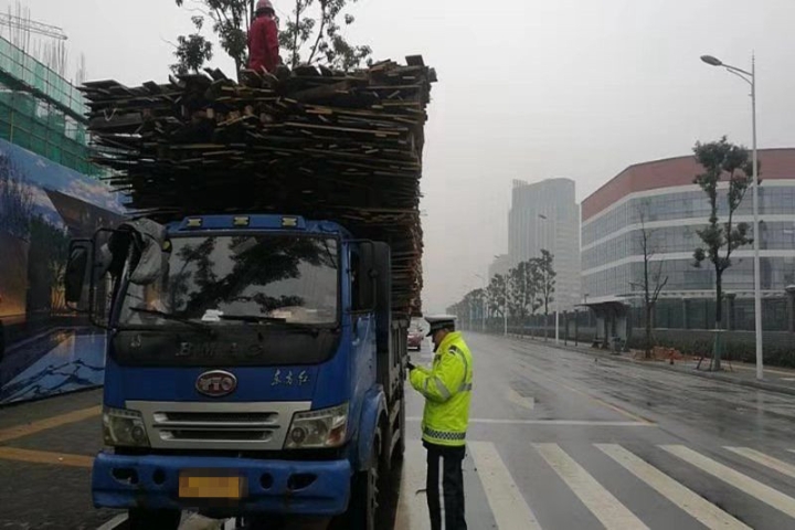 当日16时许,大队三中队民警、辅警在辖区万寿路进行巡逻检查时,发现一辆满载货物的货车严重超高,行驶中摇摇欲坠,存在重大交通安全隐患。见此险情,民警立即通过喊话,示意车辆靠边停车接受检查。检查中,民警发现该货车不仅超载超高,后车厢居然还藏着一名工人。民警当场责令驾驶员进行卸载,并对其驾驶货车不按规定载人的违法行为依法进行教育和处罚。经过民警教育,驾驶员徐某对自己违法行为的严重性有了清晰的认识,并且后悔不已。根据道路交通法律法规,民警对徐某驾驶货车违反规定载客的违法行为依法进行了处罚。