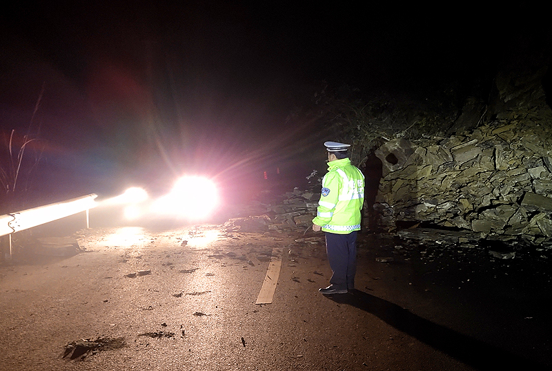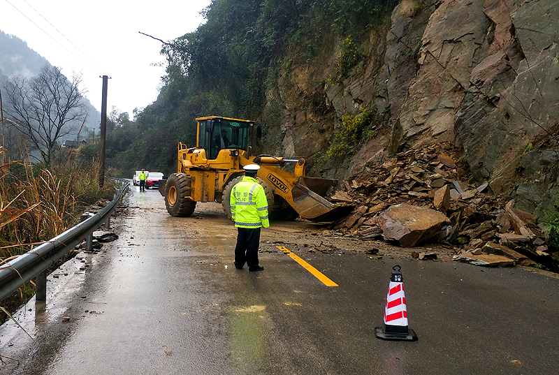 2月24日,石门县公安局交警大队快速处理一起山体滑坡引发的突发道路交通安全隐患,确保了人车通行安全。