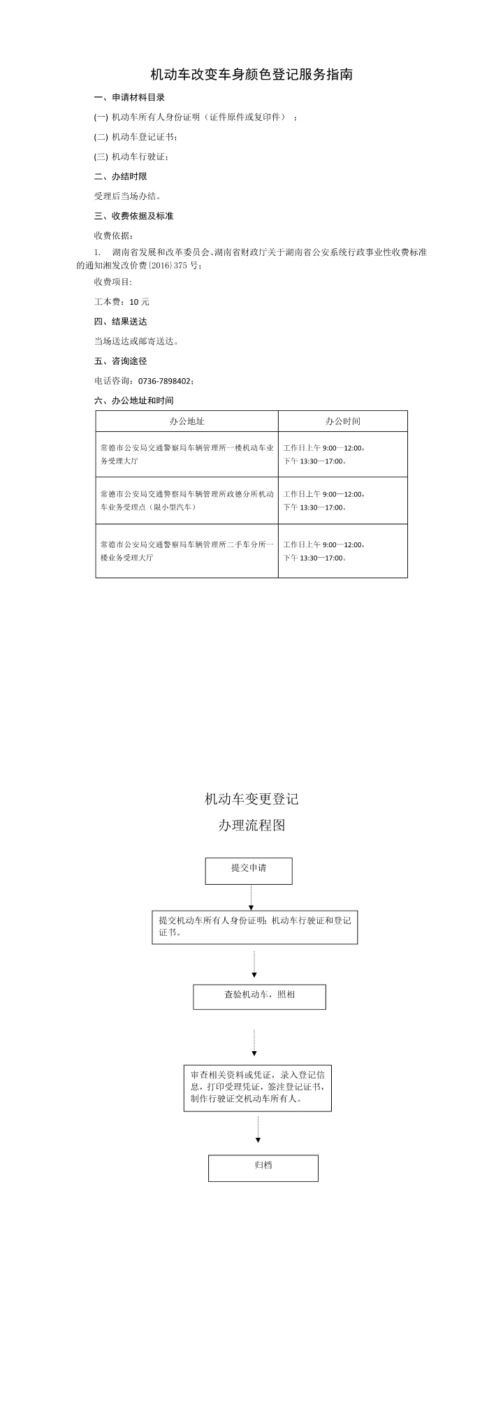 常德市公安局交通警察支队关于机动车改变车身颜色登记服务指南