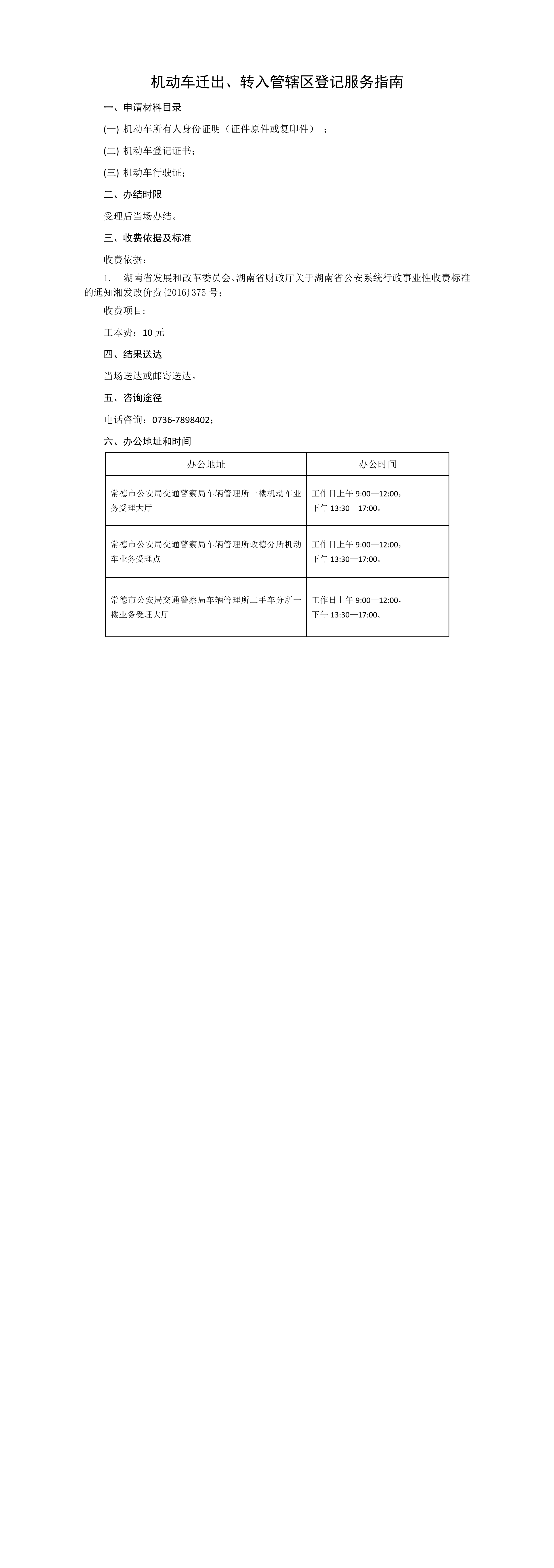 常德市公安局交通警察支队关于机动车迁出、转入管辖区登记服务指南