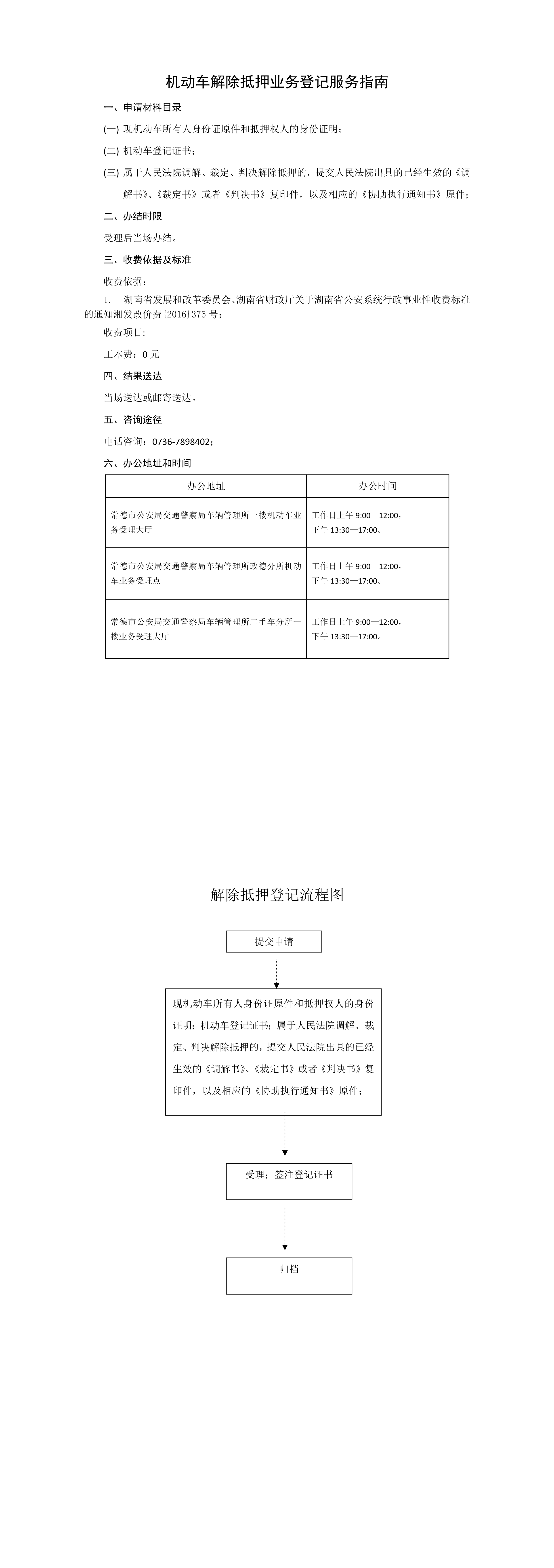 常德市公安局交通警察支队关于机动车解除抵押业务登记服务指南