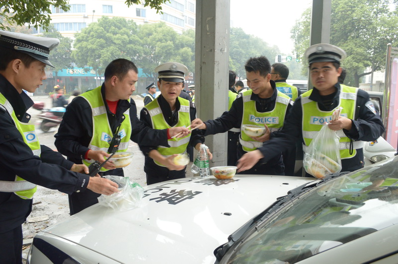 11月9日16:00,大队领导带领民警到达指定路段,在朗州路与新民街交叉路口、中法路口、丹阳天桥路口等15个路口合理布置警力,实施交通管制和疏导工作,从19:30分开始至22:30时,全体参战领导和民警发扬不怕苦、连续作战的精神,提前到达各自执勤岗位,以严整挺拨的警容警姿、认真负责的工作态度,圆满完成了此次“农行之夜”巨星演唱会暨秘藏德山一周年庆典的交通警保卫工作任务,展现了常德交警的风采。