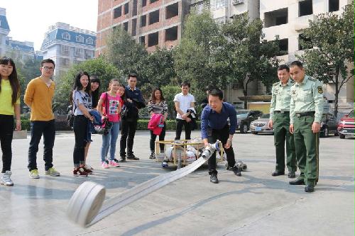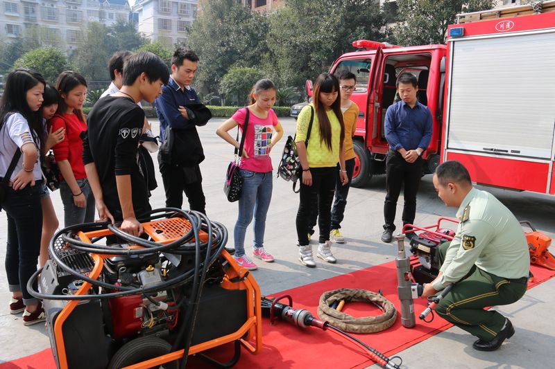 在活动中,各重点单位工作人员先后参观了大队营院、战士营房、车库、器材库等基础设施建设。大队宣传人员结合单位实际情况,详细讲解了灭火器、自助式呼吸器等基础消防器材的使用方法,室内消火栓、水带铺设、水枪水带连接方法和技巧,及怎样利用身边的物品扑灭初起火灾、怎样在火场逃生自救和互救等基本消防常识。随后,在宣传人员的指导下,各重点单位工作人员对灭火器的使用方法进行了实际操作。