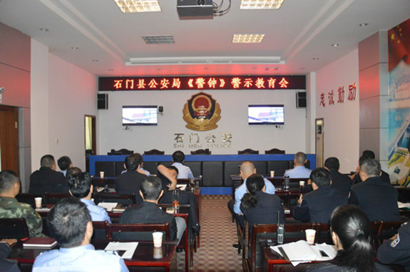 10月18日上午,石门县公安局召开《警钟》警示教育会,组织全体领导骨干,集中观看了系列警示教育片《警钟》。会议由县公安局政委陈林主持,在家的局党委成员、局属各单位主要负责人参加会议,县政府副县长候选人、县公安局局长王汝国出席会议并讲话。