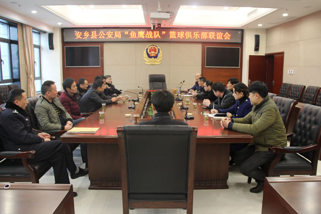 3月3日下午,安乡县公安局”鱼鹰战队”篮球俱乐部召开联谊会。会议由副局长杨国斌主持,县局党委副书记、政委汪洋,工会主席、政工室副主任孙婷以及“鱼鹰战队”全体在家队员参加了会议。