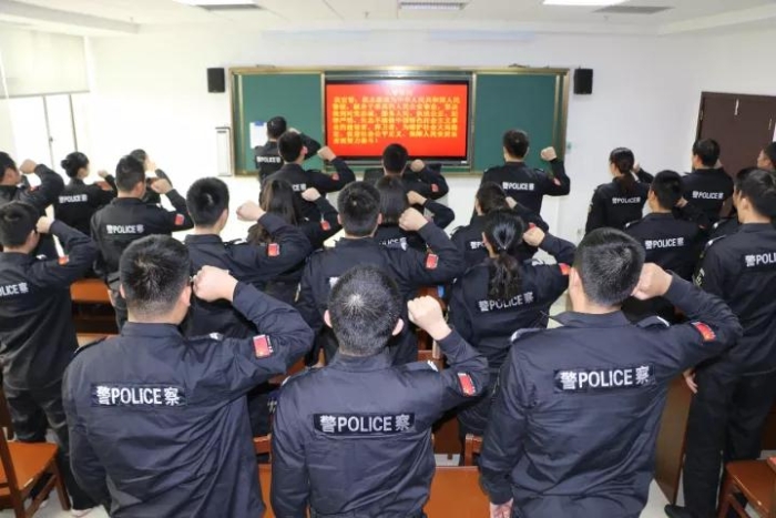 11月23日,市公安局警官培训中心组织全市公安新警开展“党的十九大报告和中国共产党章程”诵读活动,原汁原味学习党的十九大报告和中国共产党章程,并在警徽下庄严宣誓。市公安局党委书记、局长李忠鼓励全市公安新警深入践行党的十九大精神,坚定理想信念,不忘从警初心,牢记使命担当,不断砥砺前行。