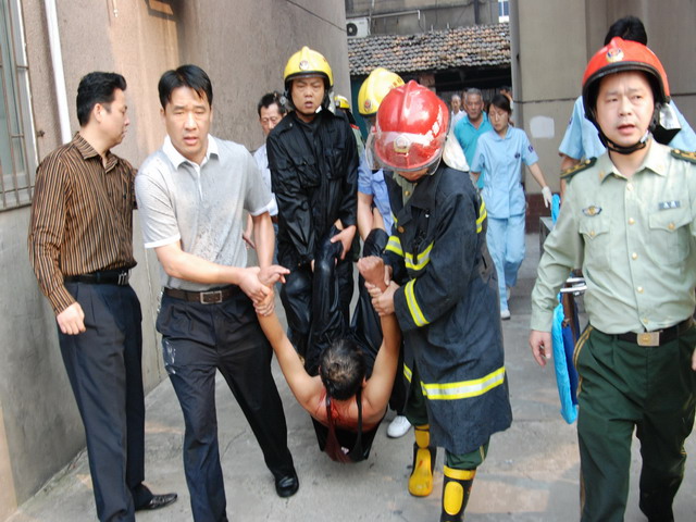 随后,在消防官兵的两只高压水枪的掩护下,魏章利、邓学军等民警冒着生命危险,一脚踹开厨房门,猛扑上去,分别夺下犯罪嫌疑人手中的菜刀和打火机,将其制服,并将液化气罐阀门拧紧,成功化解了这一重大突发性恶性案件,赢得现场群众一片掌声。
