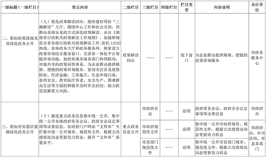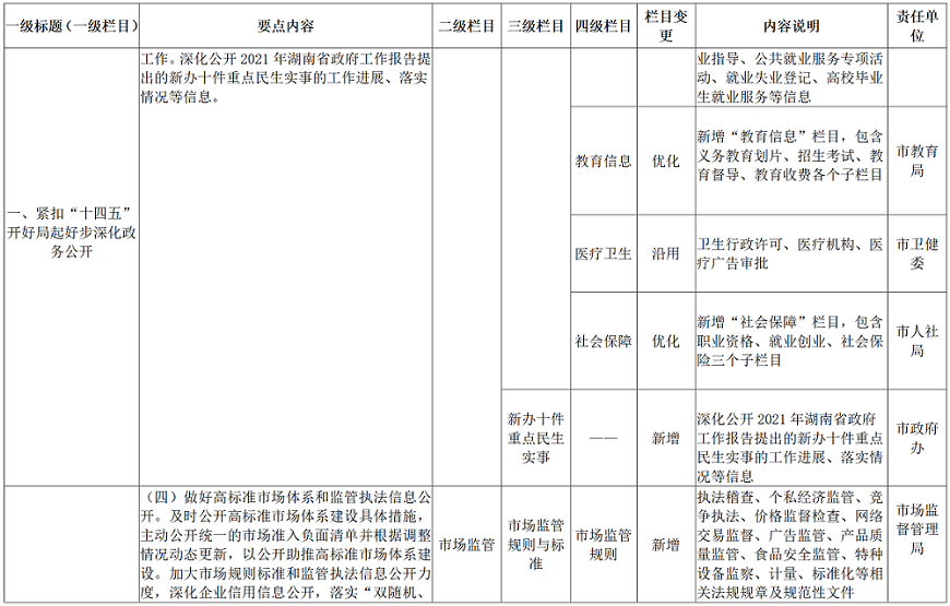常德市落实《湖南省2021年政务公开工作要点》责任分解表