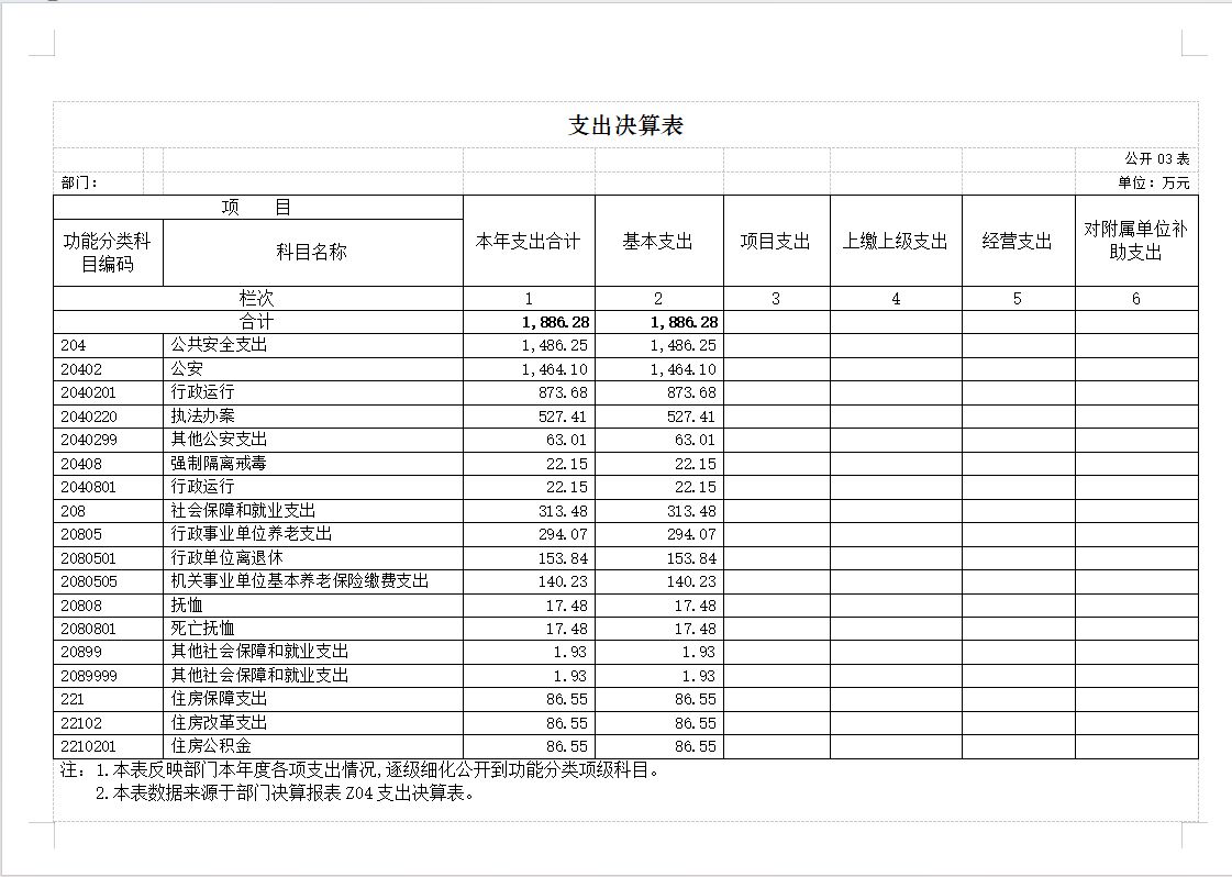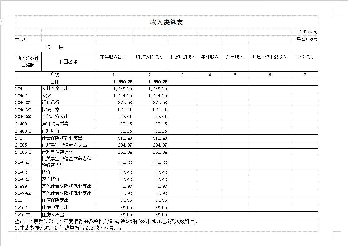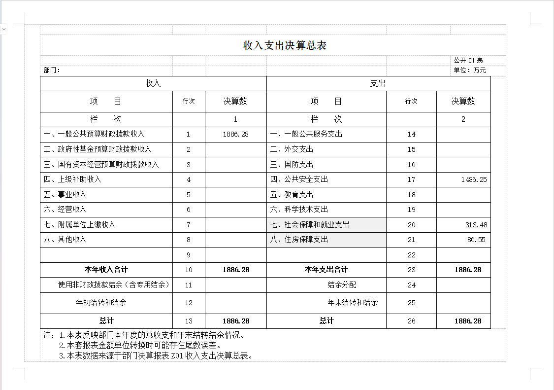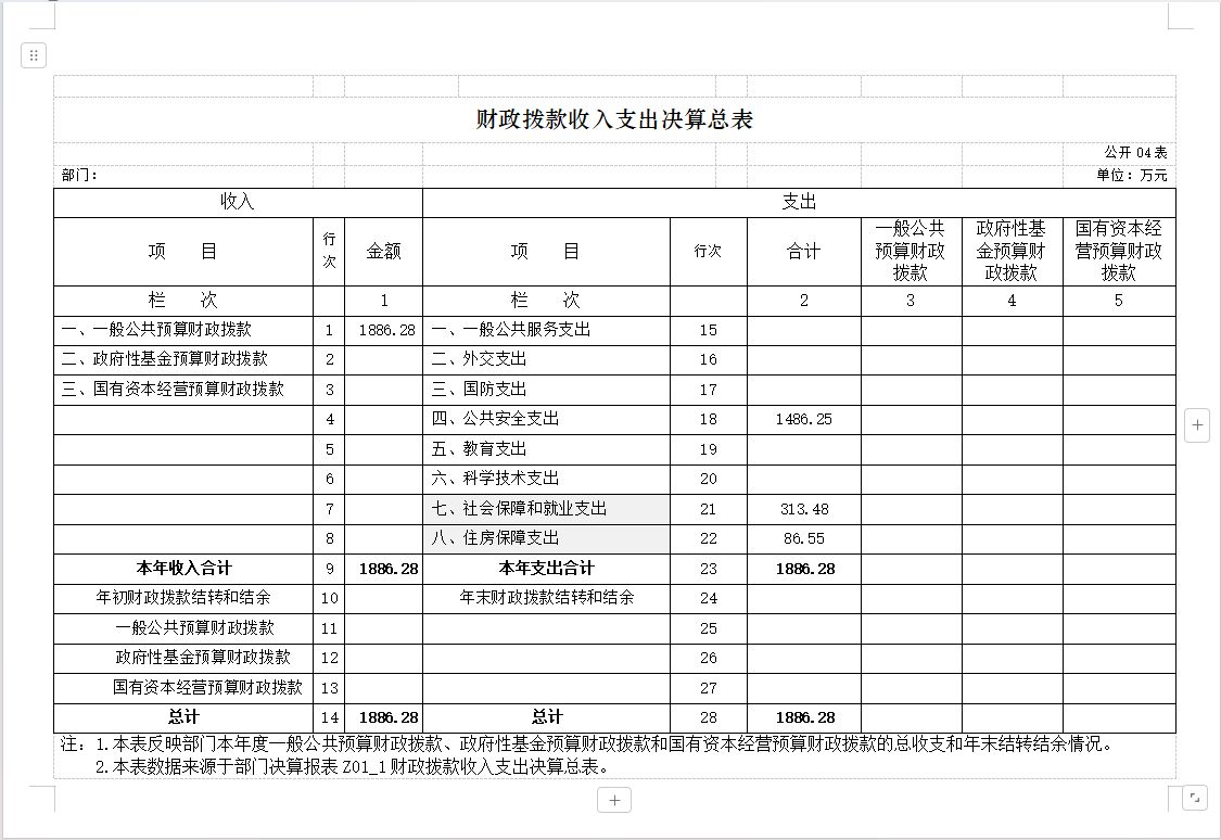部门决算表