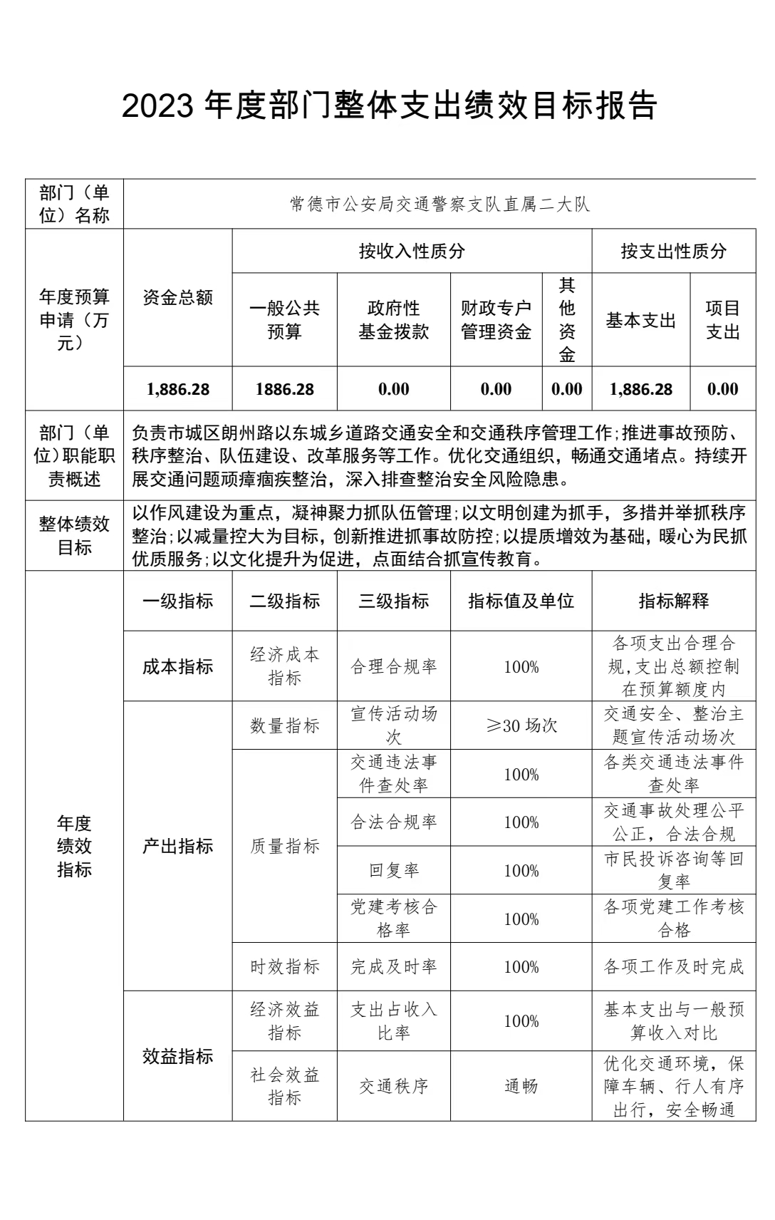 (二)决算单位构成。 本单位无所属二、三级预算单位,故2023年部门决算编制范围的为常德市公安局交通警察支队直属二大队本级。