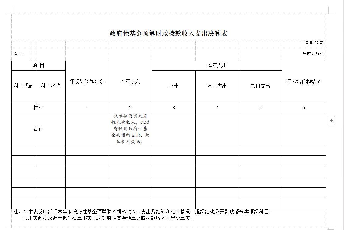 七、政府性基金预算财政拨款收入支出决算表