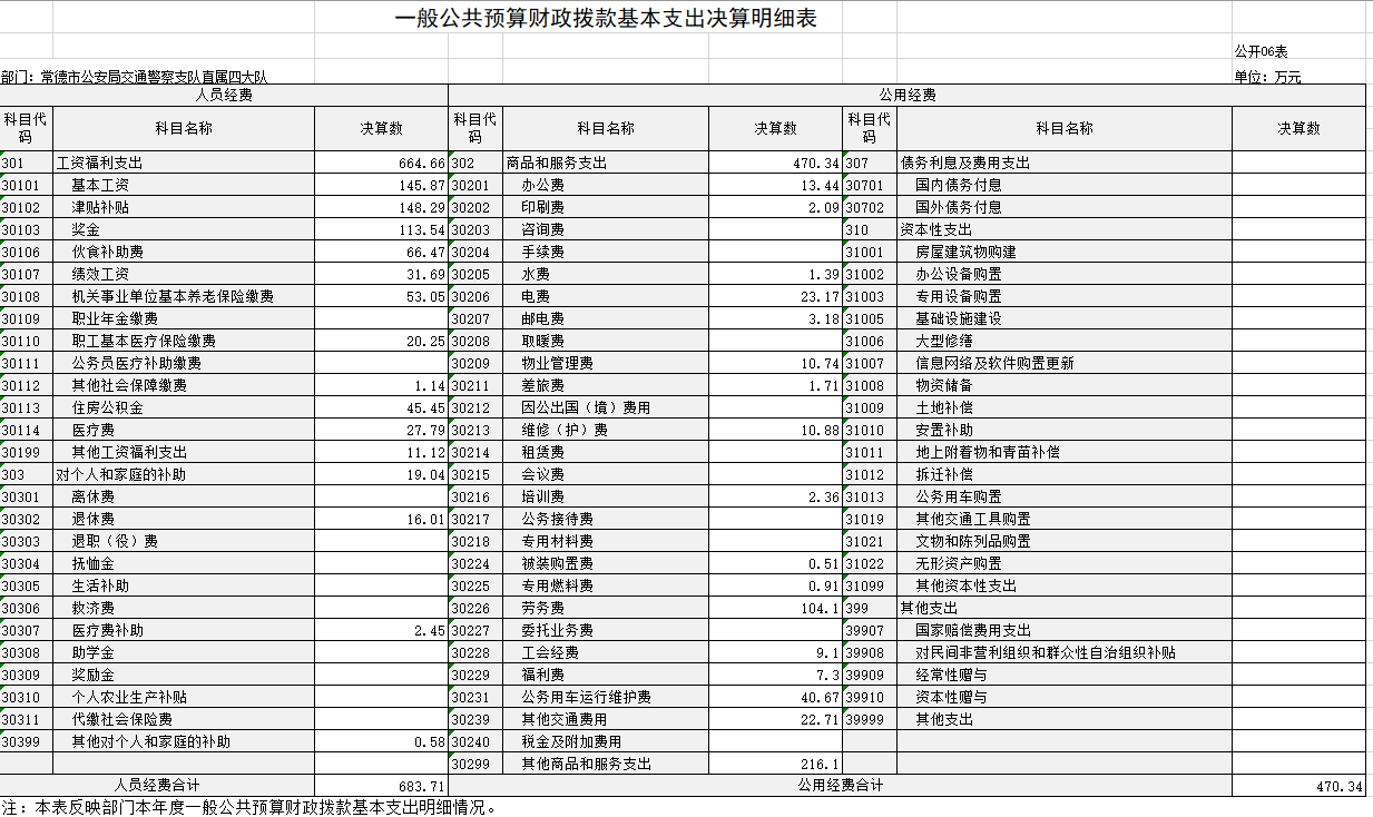 公用经费 470 . 34 万元,占基本支出的 40 . 76 %,主要包括 办公费、印刷费、水费、电费、邮电费、取暖费、物业管理费、差旅费、维修(护)费、培训费、被装购置费、劳务费、工会经费、福利费、公务用车运行维护费、其他交通费用、税金及附加费用、其他商品和服务支出办公设备购置、专用设备购置、信息网络及软件购置更新、其他资本性支出。