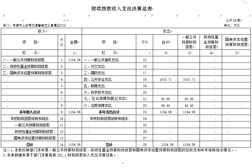 202 3 年度财政拨款收入总计1 154.06 万元,与上年相比减少9 5.29 万元,减少7 .62 %,主要是因为人员经费减少、公用经费减少。财政拨款支出总计 1154 . 06 万元,与上年相比,减少9 5 . 29 万元,减少 7 . 62 %,主要是因为人员经费减少、公用经费减少。