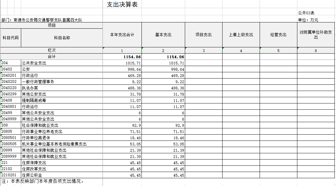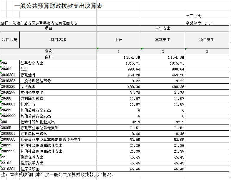 202 3 年度财政拨款支出 1154 . 06 万元,主要用于以下方面:公共安全支出1 015 . 71 万元,占 88 . 01 %;社会保障和就业支出 92 . 9 万元,占 8 . 05 %;住 房保障支出45 . 45 万元,占 3 . 94 %。