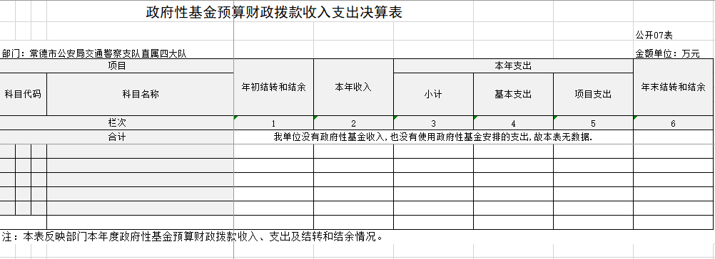 (二)决算单位构成。 本单位202 3 年部门决算汇总公开单位构成包括:本单位无所属二、三级预算单位,故 2023 年部门决算编制范围为常德市公安局交通警察支队直属四大队本级。