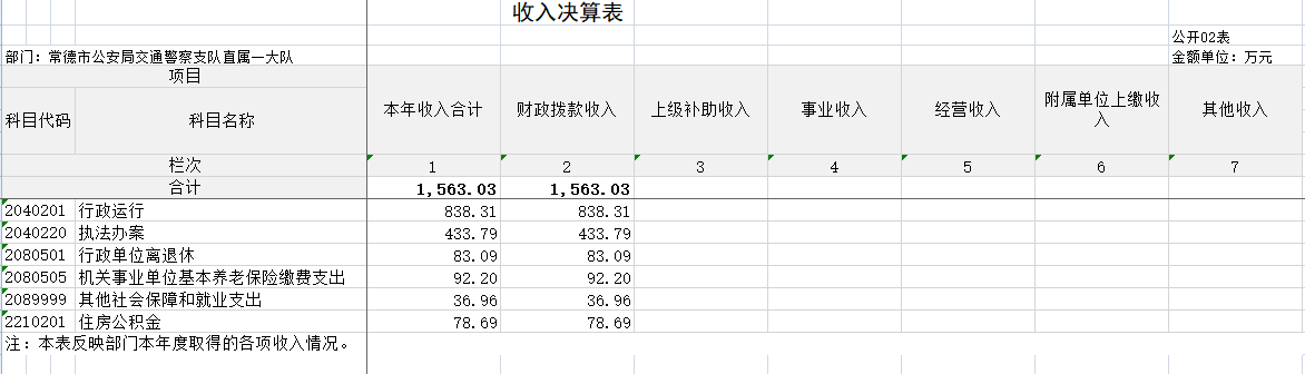 2024年度收入合计1563.03万元,其中:财政拨款收入1563.03万元,占100%;上级补助收入0万元,占0%;事业收入0万元,占0%;经营收入0万元,占0%;附属单位上缴收入0万元,占0%;其他收入0万元,占0%。