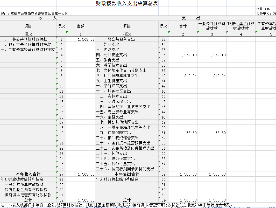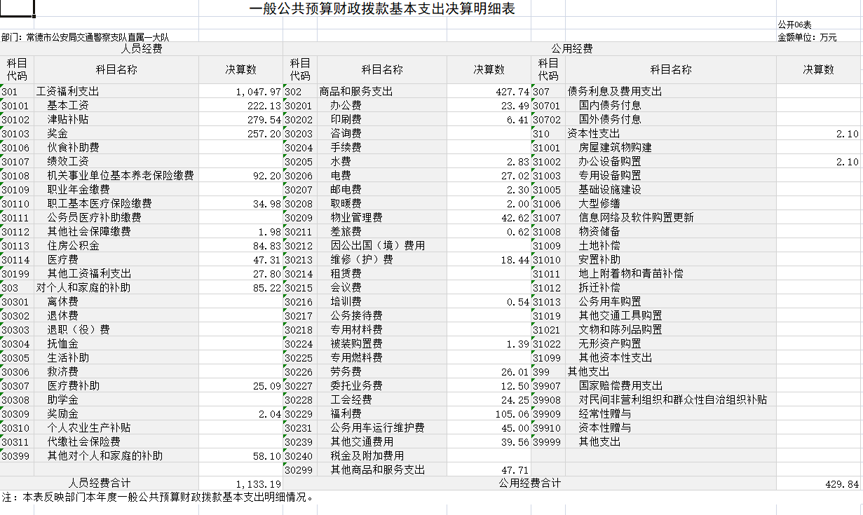 (二)决算单位构成。市公安局交通警察支队直属一大队单位本级以及常德市公安局交通警察支队直属一大队2024年部门决算汇总公开单位构成包括:本单位无所属二、三级预算单位,故2023年部门决算编制范围为常德市公安局交通警察支队直属一大队单位本级。