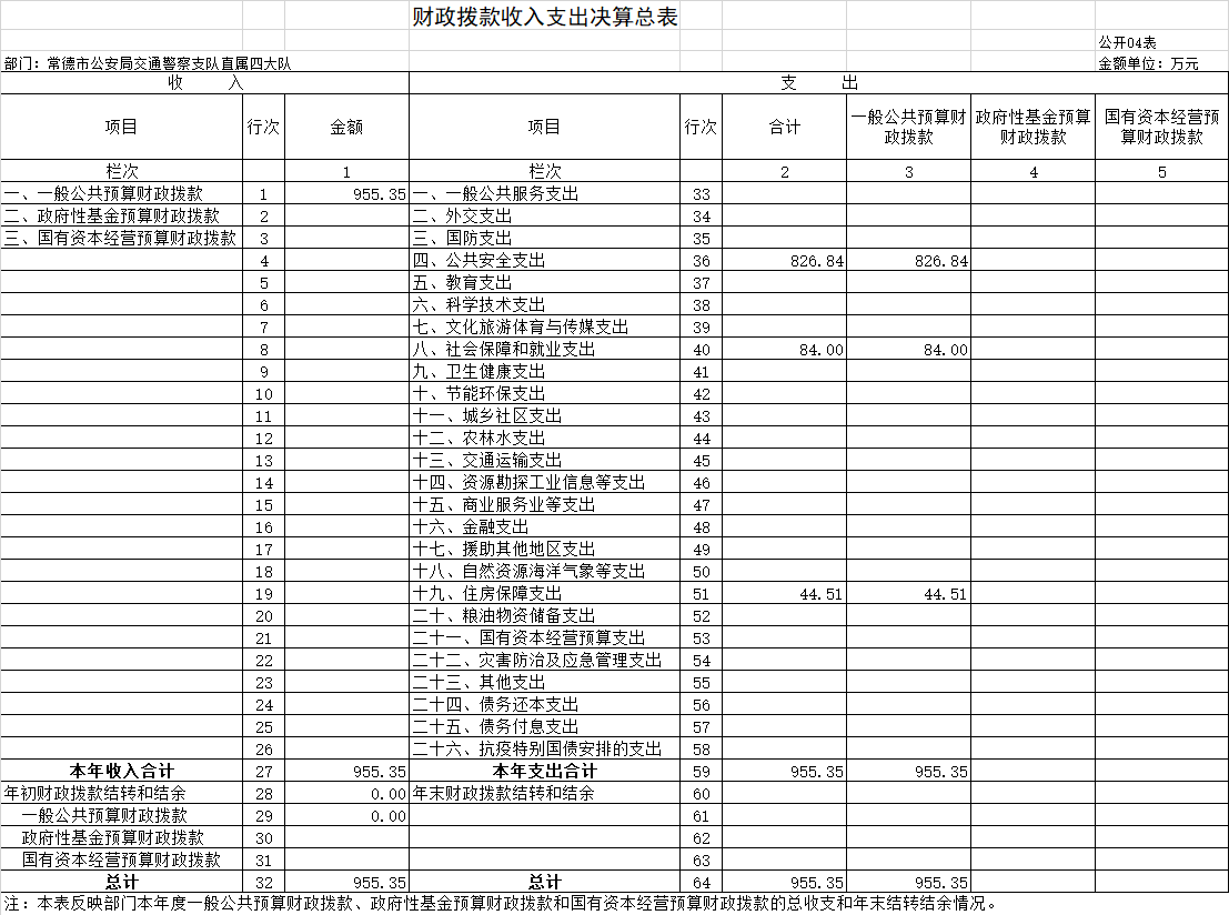 四、财政拨款收入支出决算总表