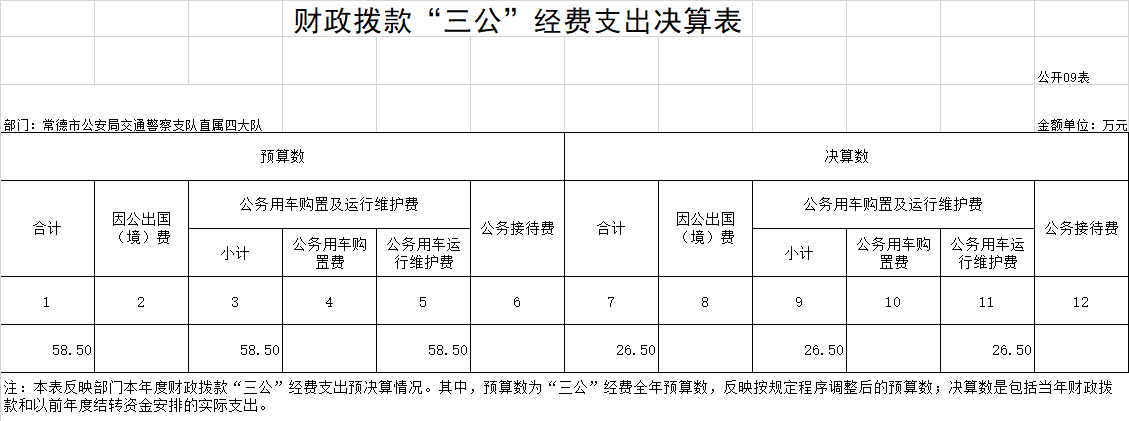“三公”经费财政拨款支出预算为58.5万元,支出决算为26.5万元,完成预算的100%,其中: