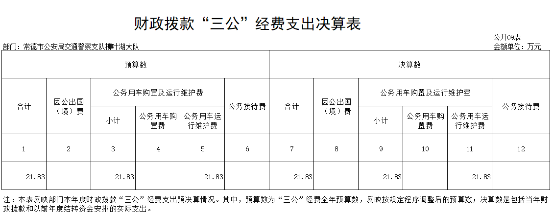 公务用车运行维护费支出预算为 40.5 万元,支出决算为 21.83 万元,