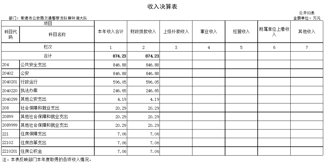 2024 年度收入合计 874.23 万元,其中:财政拨款收入 874.23 万元,占 100 % ;上级补助收入 0 万元,占 0 % ;事业收入 0 万元,占 0 % ;经营收入 0 万元,占 0 % ;附属单位上缴收入 0 万元,占 0 % ;其他收入 0 万元,占 0 % 。