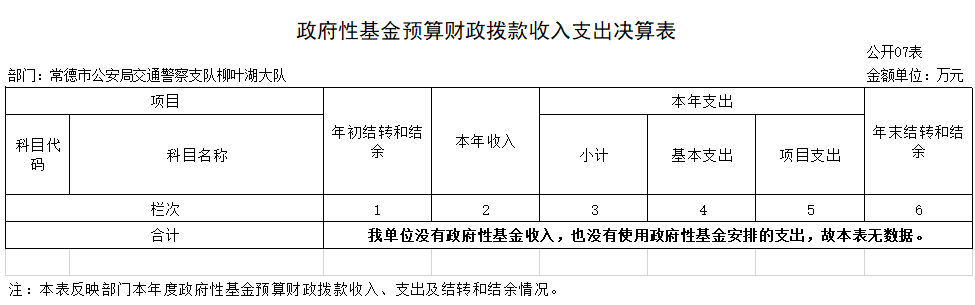 (一)内设机构设置。常德市公安局交通警察支队柳叶湖大队内设机构包括:本单位内设科室 3 个,所属事业单位 0 个。