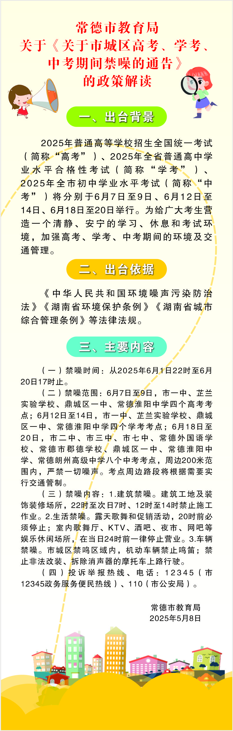常德市教育局关于《关于市城区高考、学考、中考期间禁噪的通告》的政策解读
